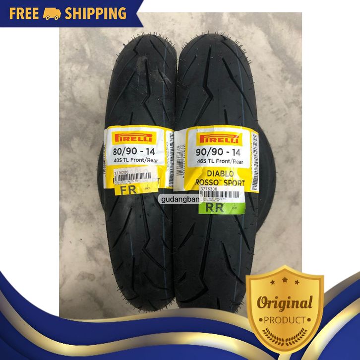 [Mall] ( PAKET 2 BAN ) DRS Ring 14 !! Pirelli Diablo Rosso SPORT 80 90 14 dan 90 90 14 TUBELESS FREE PENTIL