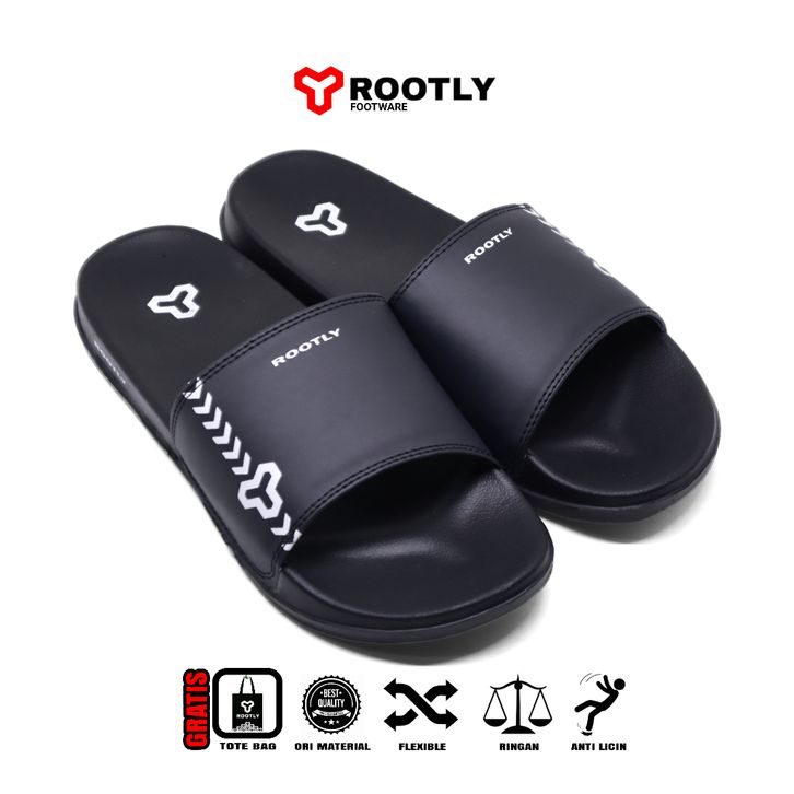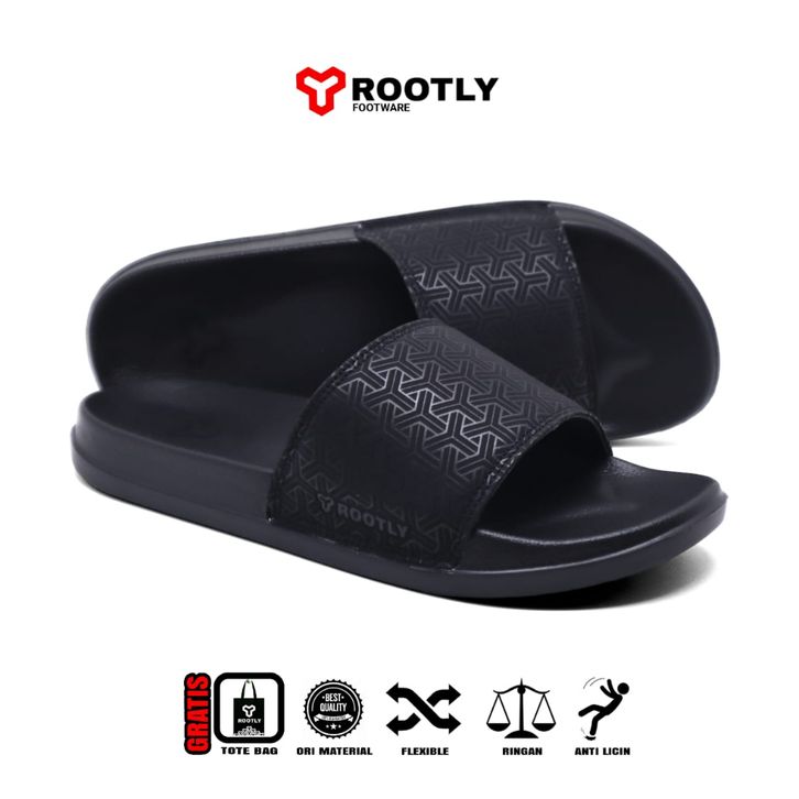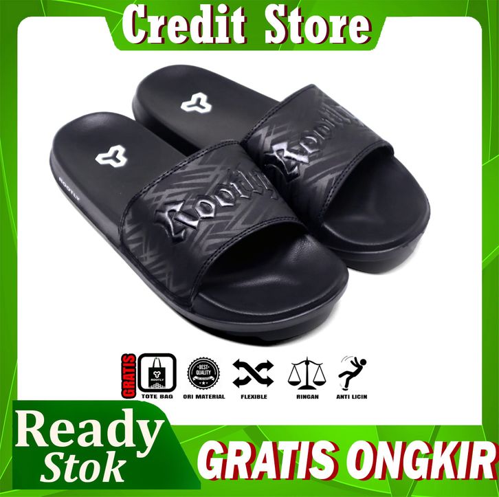 CREDIT STORE Sandal Slop Pria Wanita Murah /Sandal Slipper Pria Slide On Full Black Anti Slip