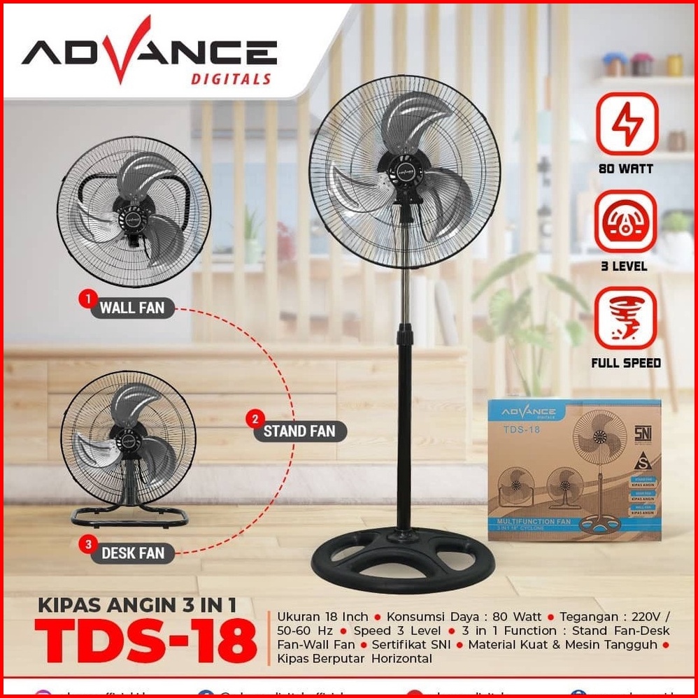 Kipas Angin Advance Tds18 3in1 Tds 1805 Tds1805 18inch Multifungsi Kipas Angin Tornado Fan