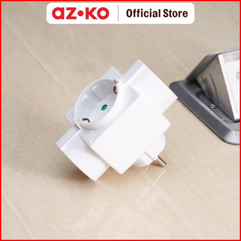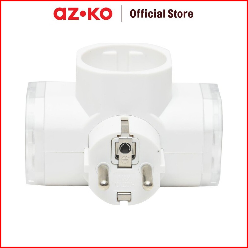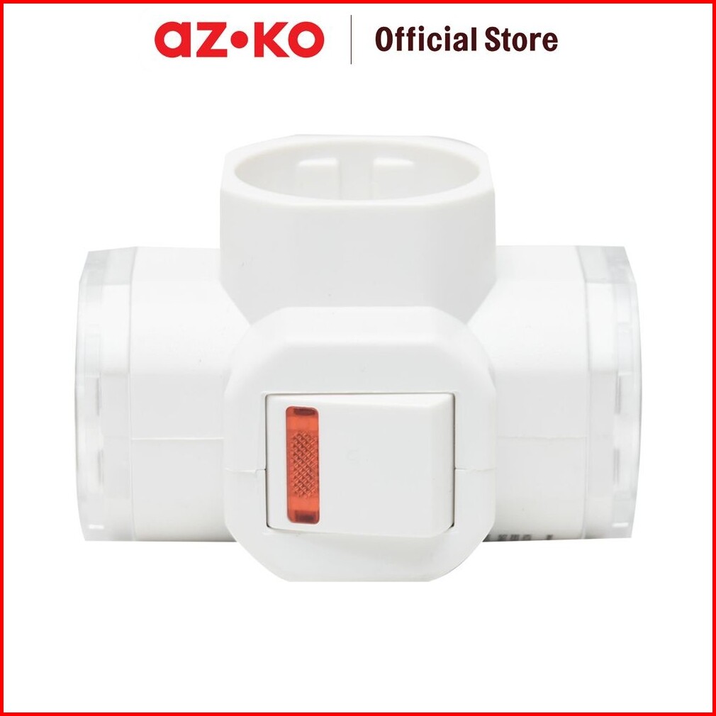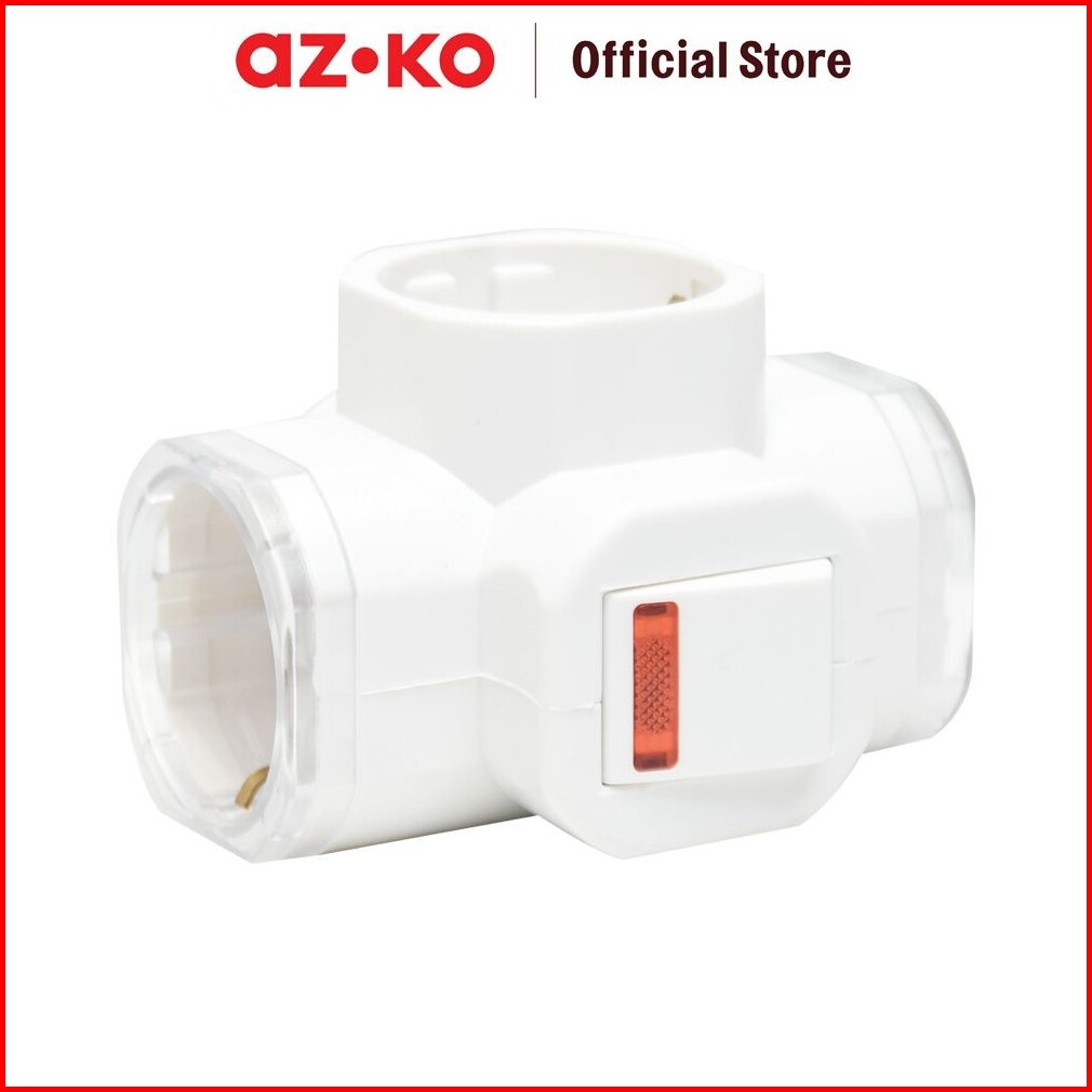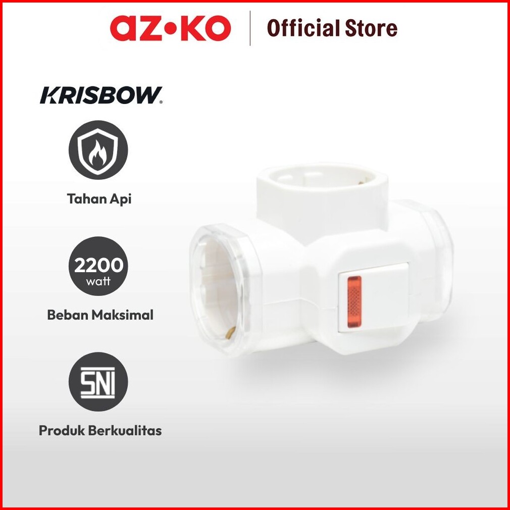 Azko Krisbow Steker T-arde 3 Arah Dengan Switch - Putih Electric Socket Soket Cabang Adaptor Colokan Peralatan Elektroni