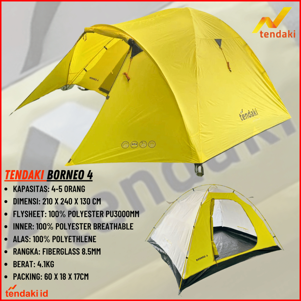 Tenda Tendaki Mis Borneo 4 Tenda Camping Dome 4 Orang Double Layer