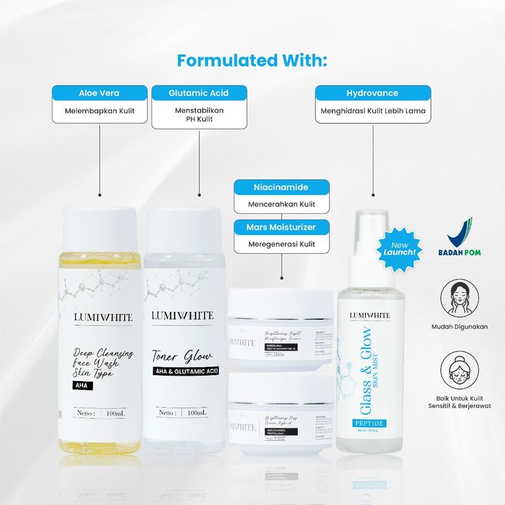 Lumiwhite Official Store Skincare Bundle Terlaris 2024 Glass & Glow Skin Mist (Facemist) Skincare Wanita Glowing BPOM