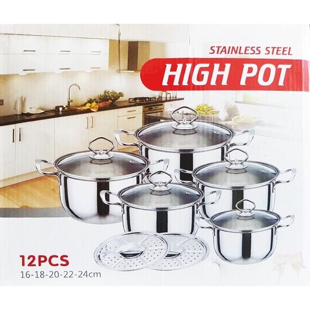 Termurah Panci Set High Pot Stainless Steel 12 pcs