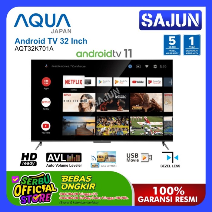 AQUA ANDROID TV 32 INCH AQT-32K701-A FHD LED AQT32K701A