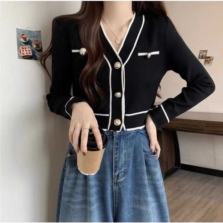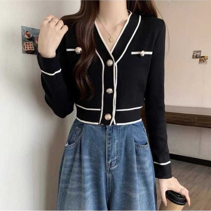 sweater pria/wanita/dewasa/switer kekinian import/terbaru/over size/LUNNA CROP BUTTON CARDIE SWEATER - CARDIGAN OUTER AT