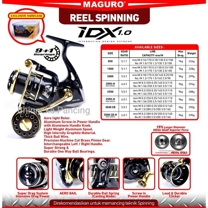 Reel Maguro IDX 1.0 | | 9+1 Bearing | Mega Gear | Power Handle | Spinning | 800 | 1000 | 2000 | 2500 | 3000CB | Alat Pan