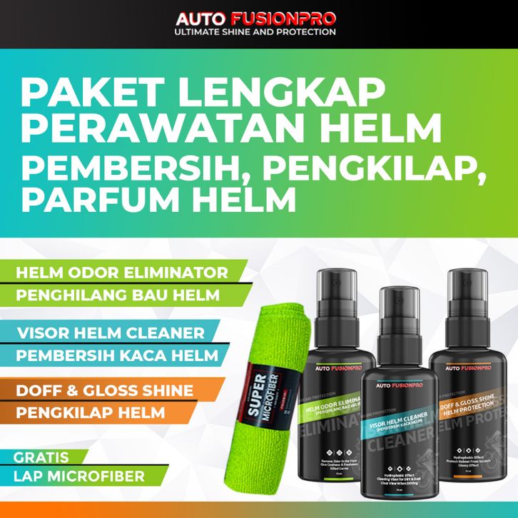 Paket Perawatan Helm - Pengkilap Helm, Pembersih Kaca Helm, Efek Daun Talas,dan Parfum Helm