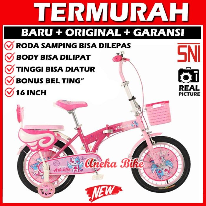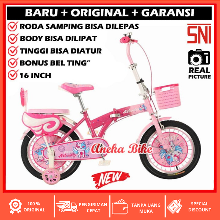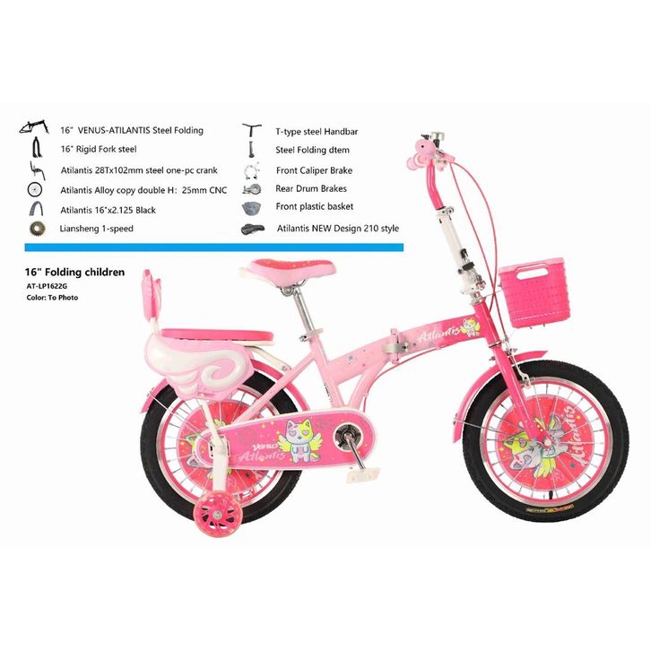 Sepeda Lipat Anak Cewek Perempuan 16 inch Pink ATLANTIS VENUS BEST SELLER - STORE.HEAVEN