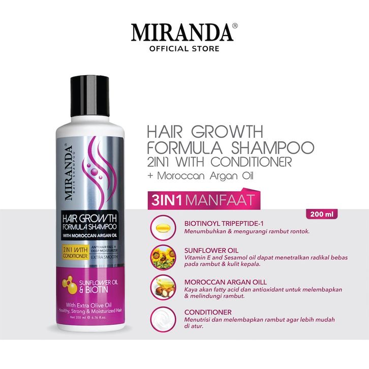 MIRANDA SHAMPO 2IN1 WITH CONDITIONER SHAMPO PELURUS RAMBUT PENUMBUH RAMBUT CEPAT PENGHITAM RAMBUT HAIR GROWTH