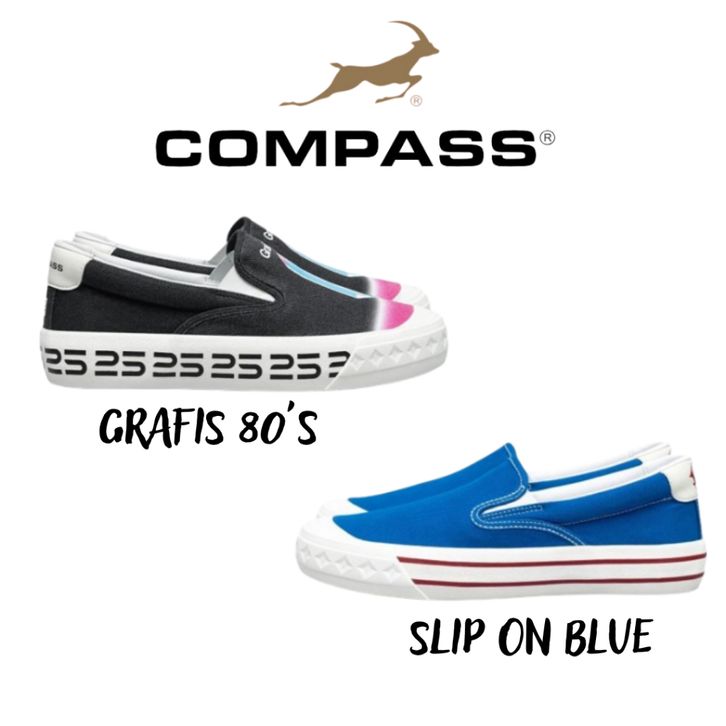 ( PAKET ) SEPATU COMPASS GRAFIS 80'S & SLIP ON BLUE
