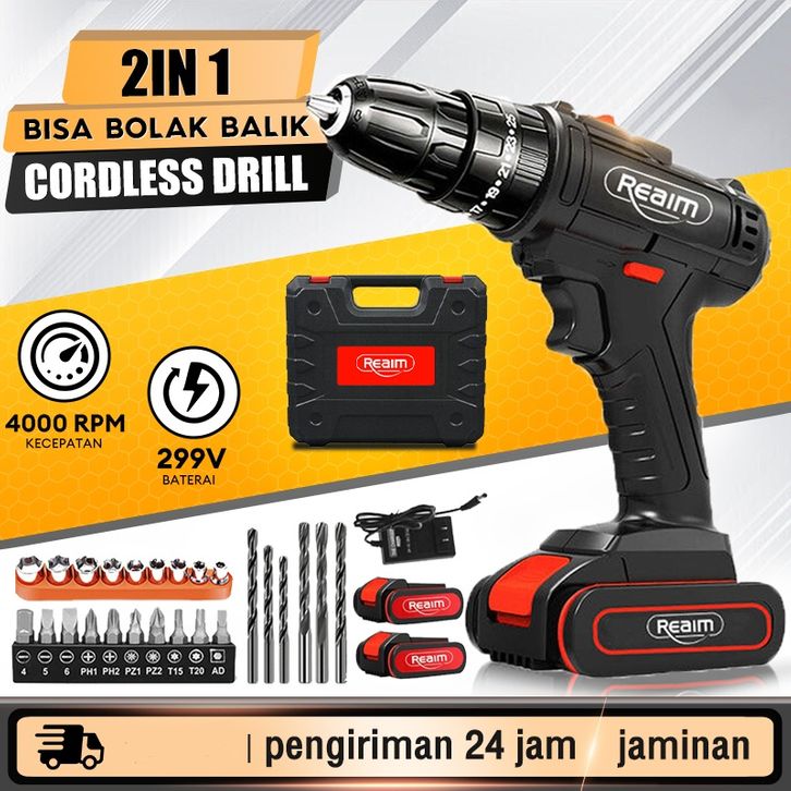 Bor Baterai Bor Cas Bor Listrik Bor 2 in 1 Cordless Electric Drill Impact Drill Drill Obeng Mesin Multifunction Electric