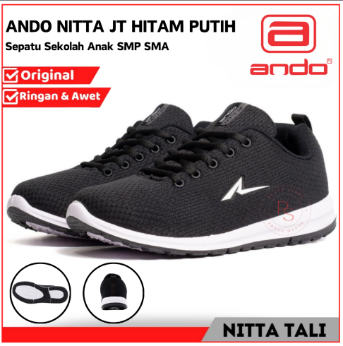 Sepatu Sekolah Ando Hitam Putih Anak Laki Perempuan SD SMP SMA 37-40 Termurah