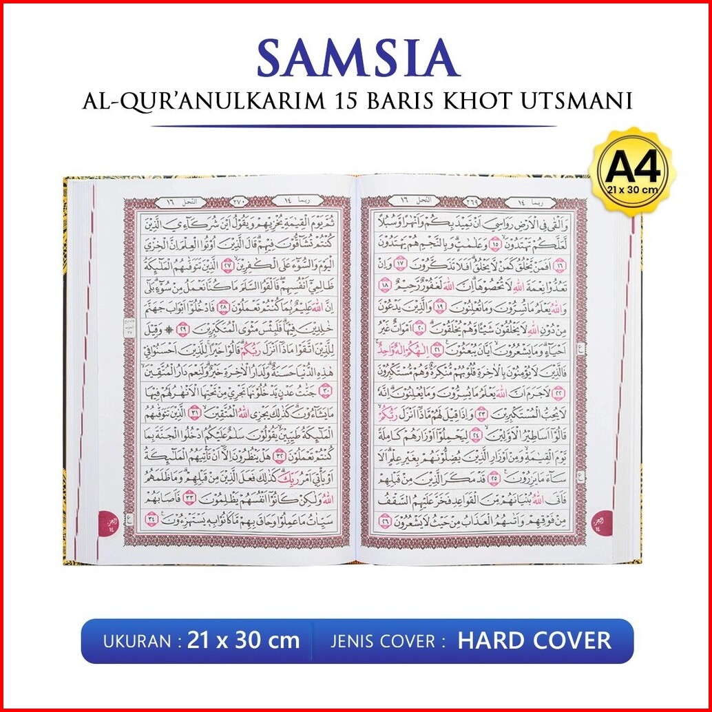 Al Quran Besar Samsia Ukuran A4 Quran Al Quranulkarim Hvs Alquran Non Terjemah Jumbo 15 Baris Khot Utsmani Pustaka Barok