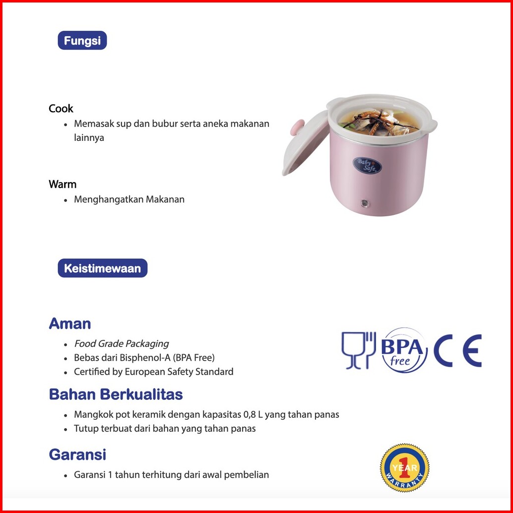 Baby Safe Lb009 Pink Slow Cooker Alat Memasak Menghangatkan Makanan Anak Pink