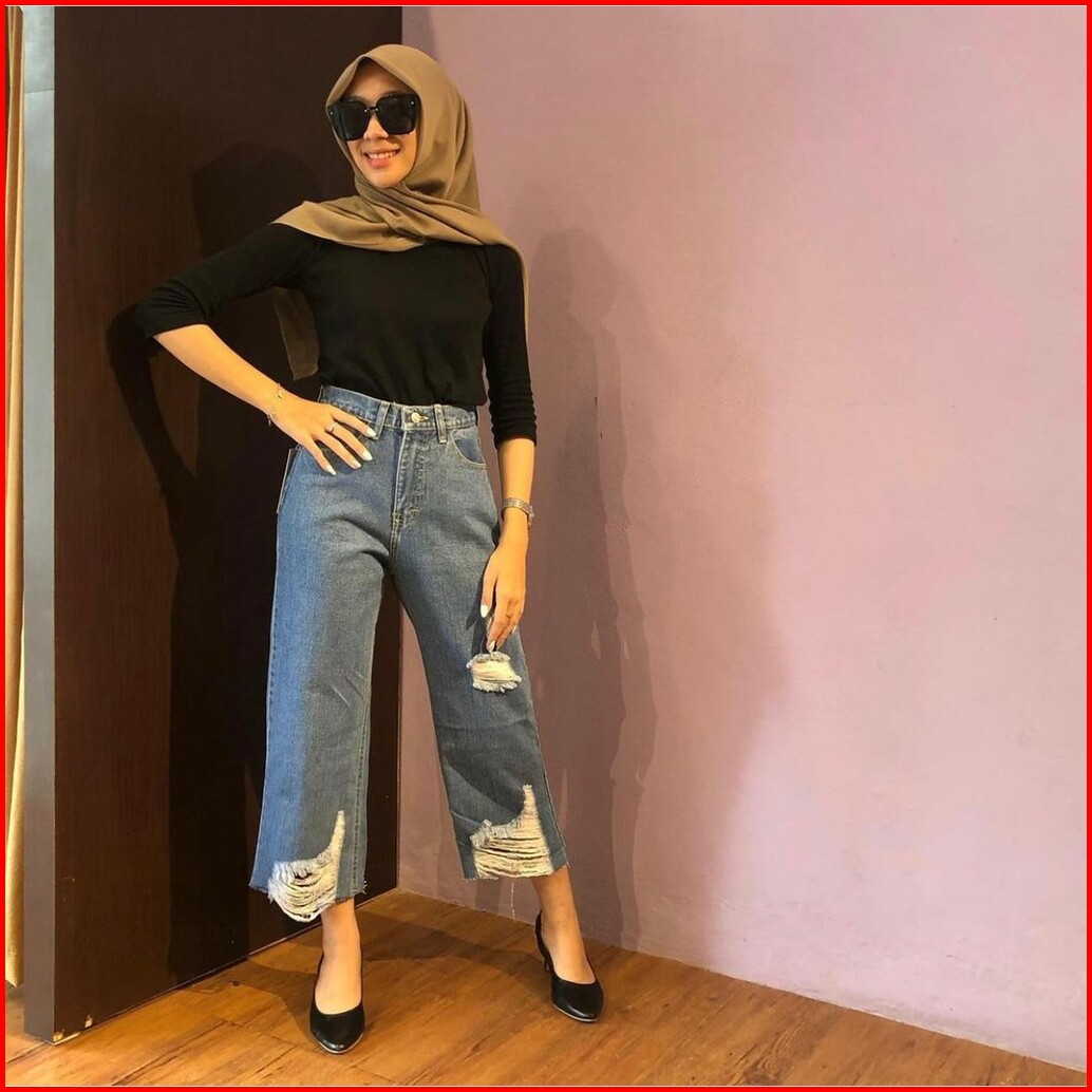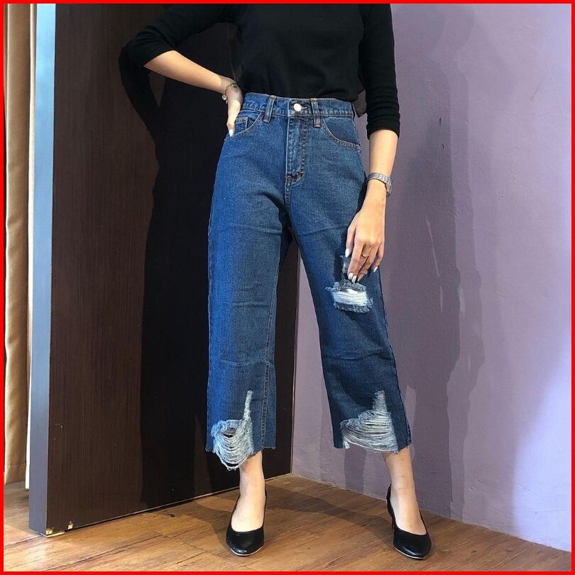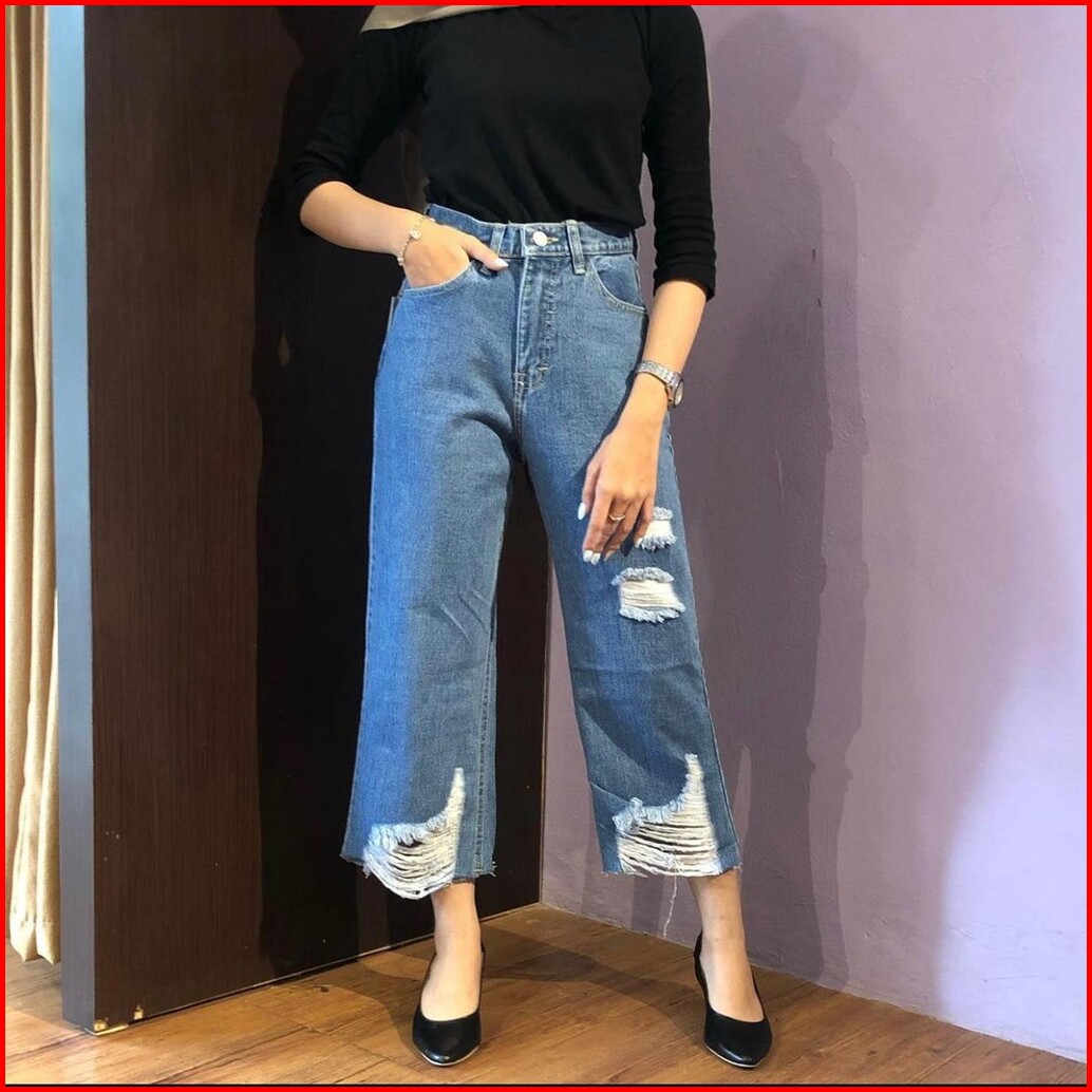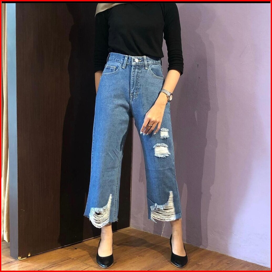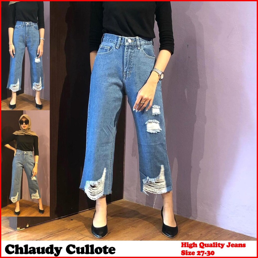 Trivela - Chlaudy Cullotes Jeans 27-34 Jumbo Celana Jeans Kulot Rawis Sobek
