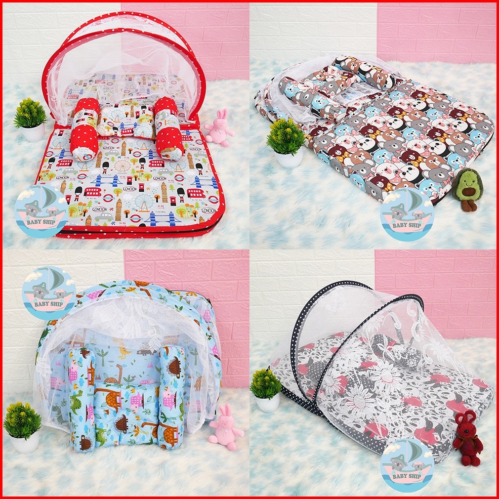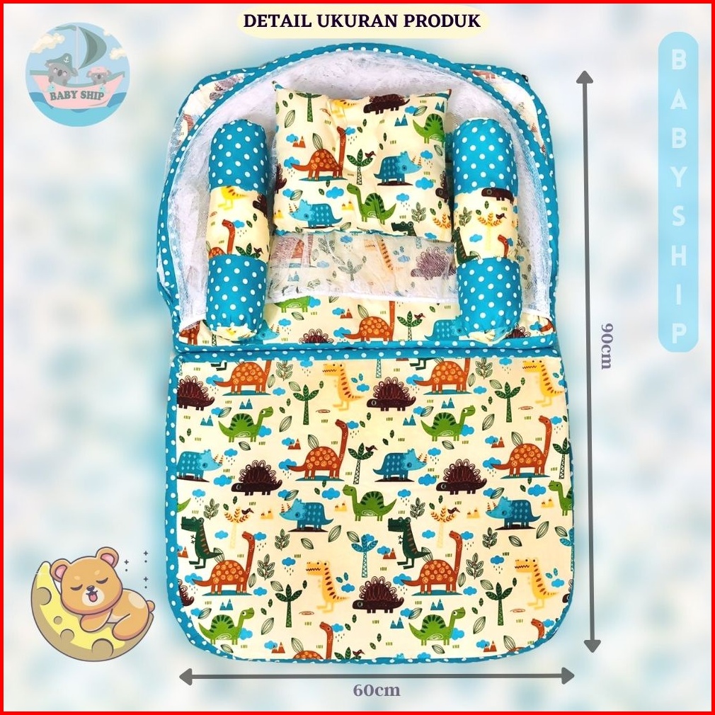Kasur Bayi Kelambu Lipat Tempat Tidur Bayi Lipat - Set Bantal Guling Free Tas Mika