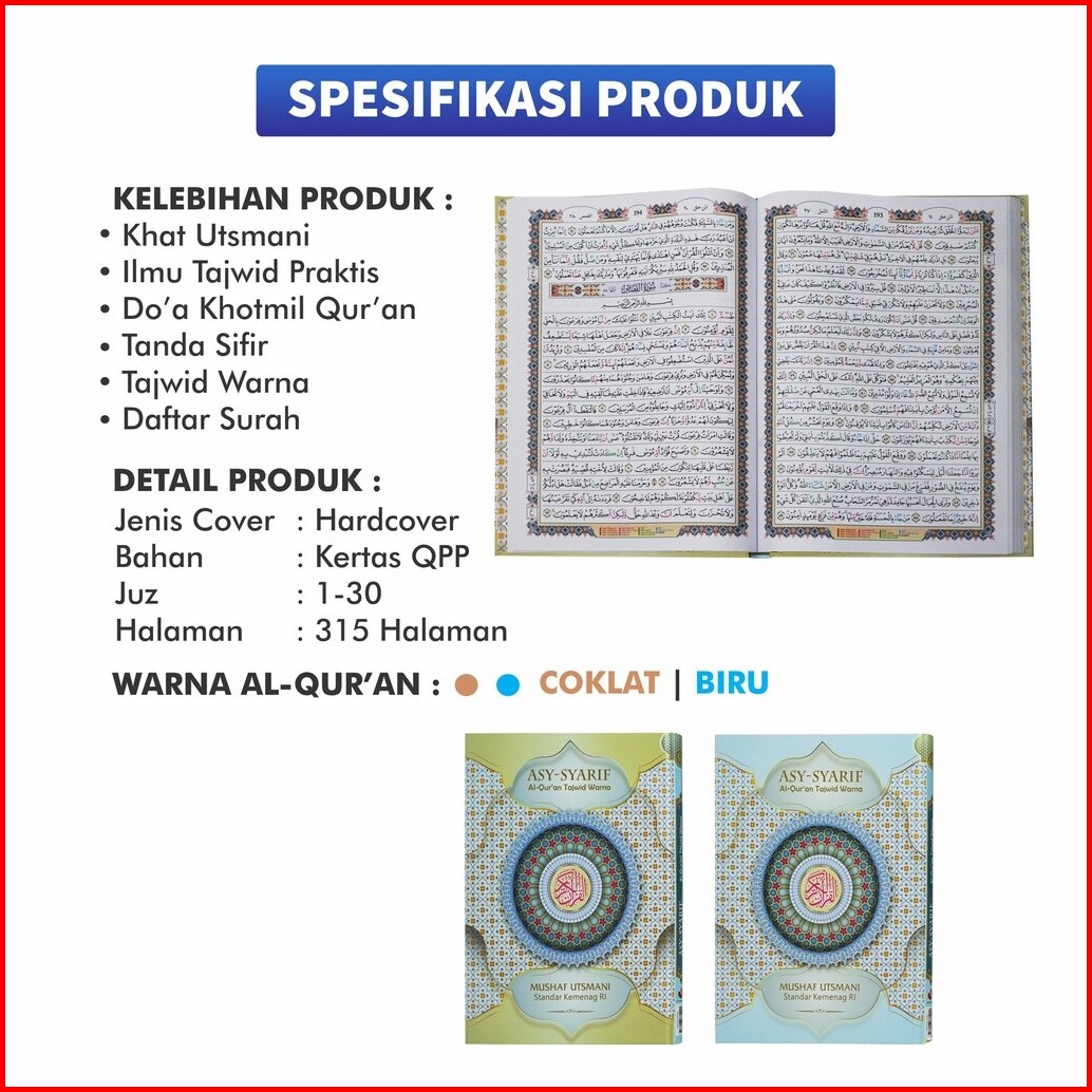 Al Quran Tajwid Warna Asy Syarif Mushaf Utsmani Ukuran A4 Alquran Non Terjemah Cipta Bagus Segara - Cbs