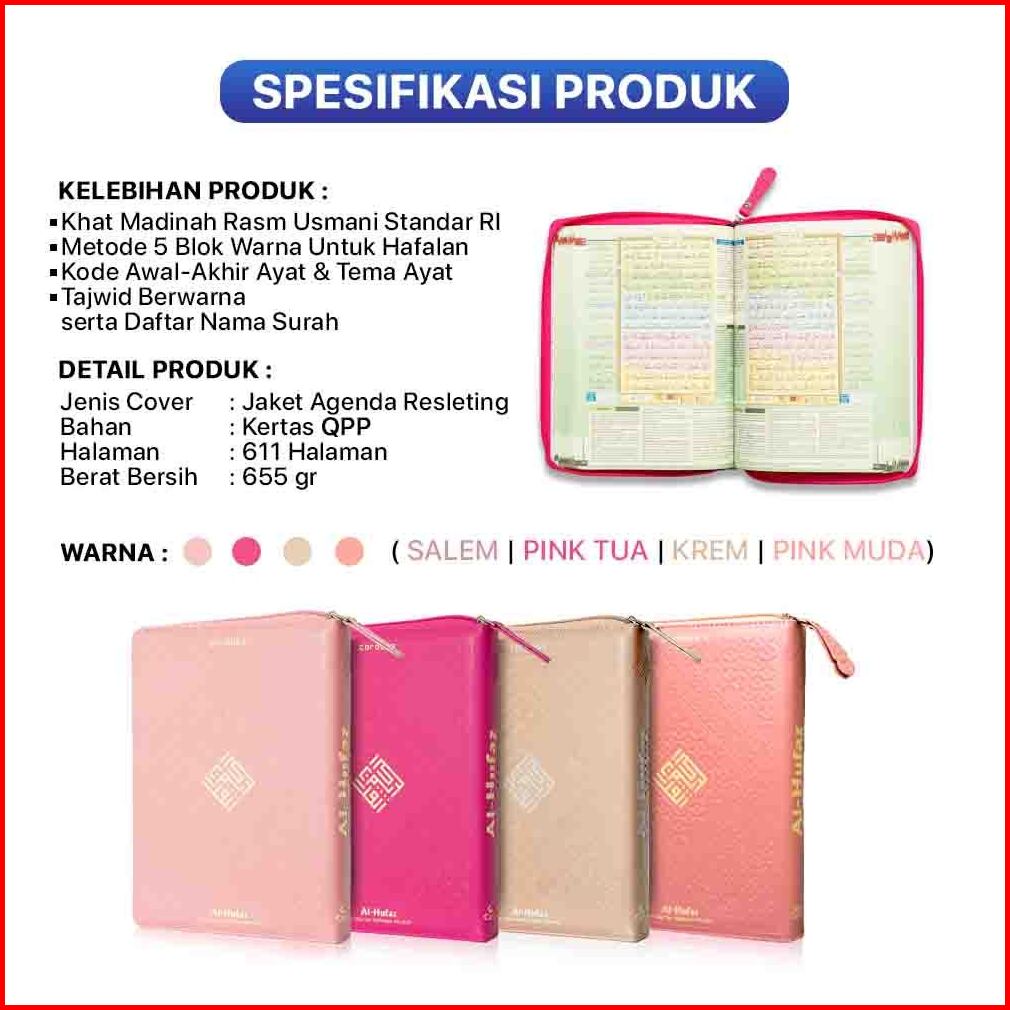 Al Quran Terjemah Al Hufaz A5 Alquran Kecil Wanita Jaket Agenda Resleting Quran Muslimah Cordoba Terjemah Tb Manfaat - C