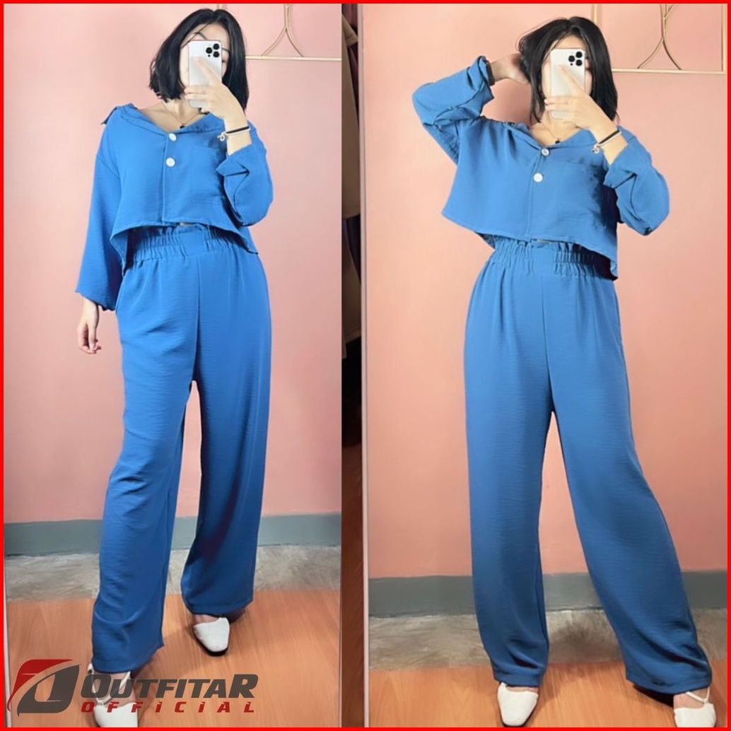 Setelan Wanita Crop Claudia Dan Celana Kulot Set Cringkle Premium