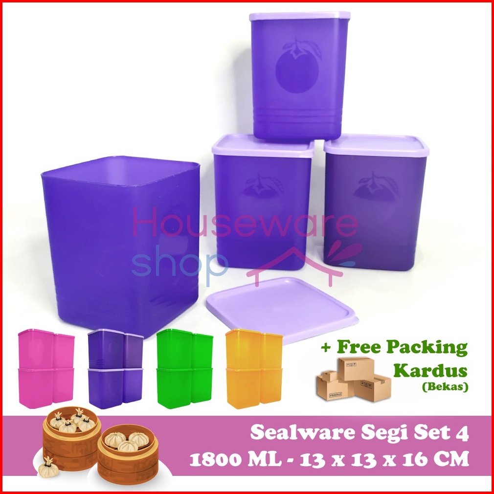 Set 4 Pcs X Tempat Makan Toples Sealware Segi Large - 1800ml Food Grade