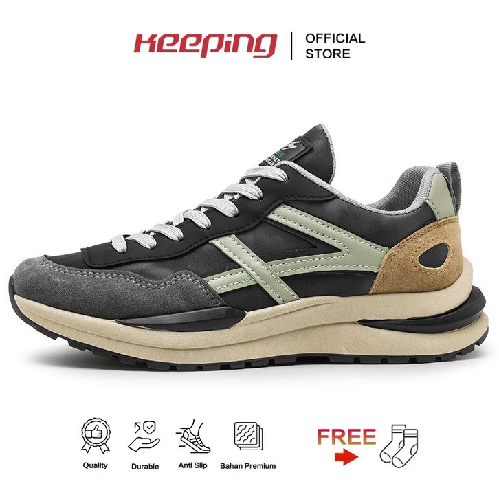 Sepatu Keeping Sneakers Pria Kerja Sepatu pria Casual Sepatu Olahraga Abu Sport Running Shoes KSD103 FREE ONGKIR