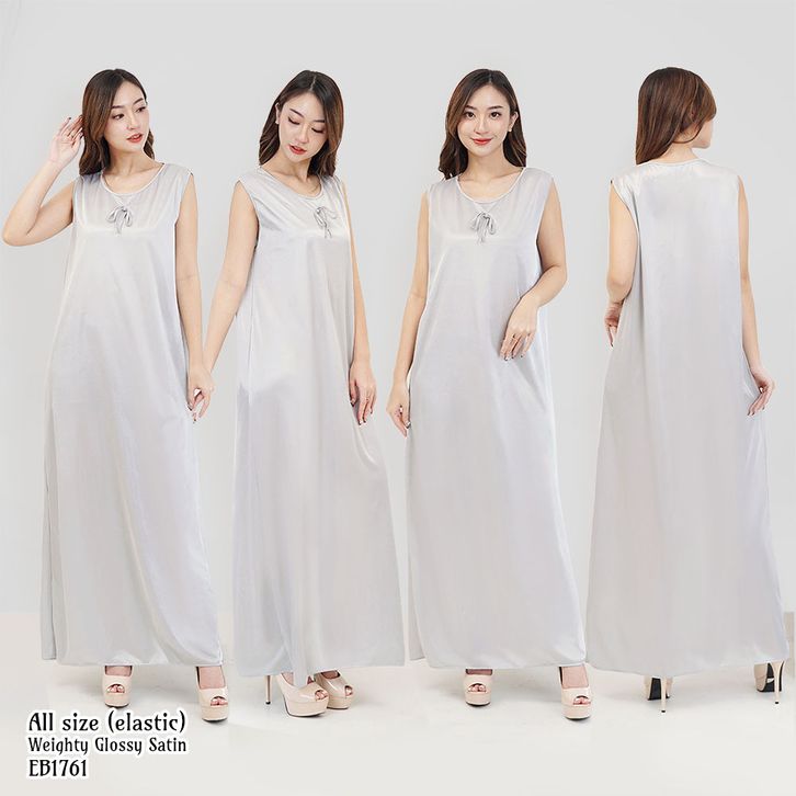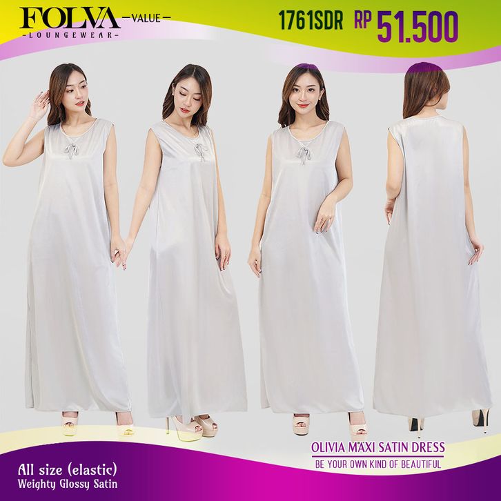 FOLVA Loose dress panjang tanpa lengan baju tidur satin 1761SDR silver