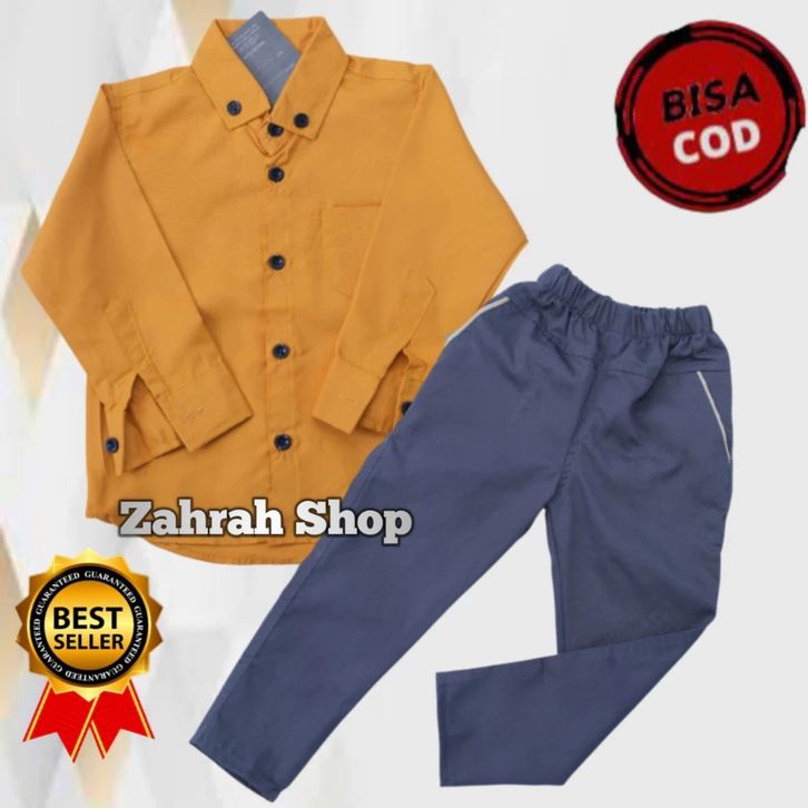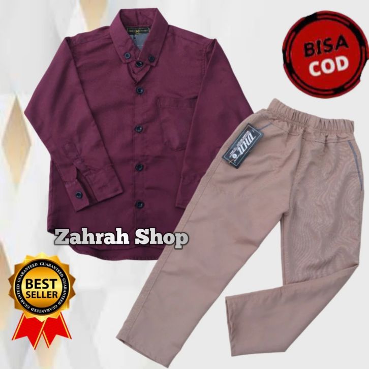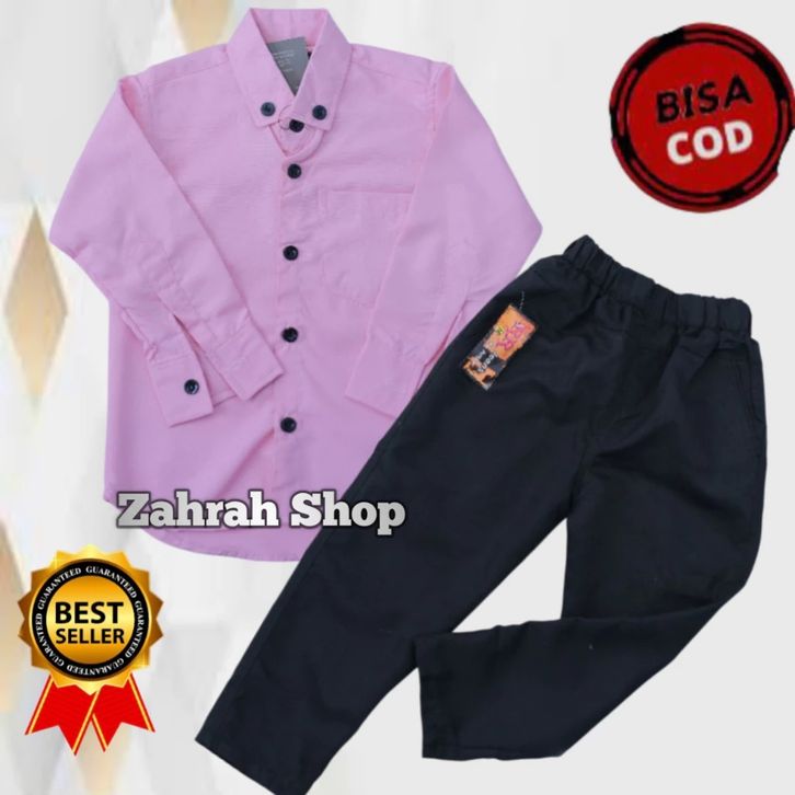 Setelan Kemeja Lengan Panjang Celana Chinos Setelan Anak Laki Laki 1-12 Tahun Setelan Baju Anak Cowok