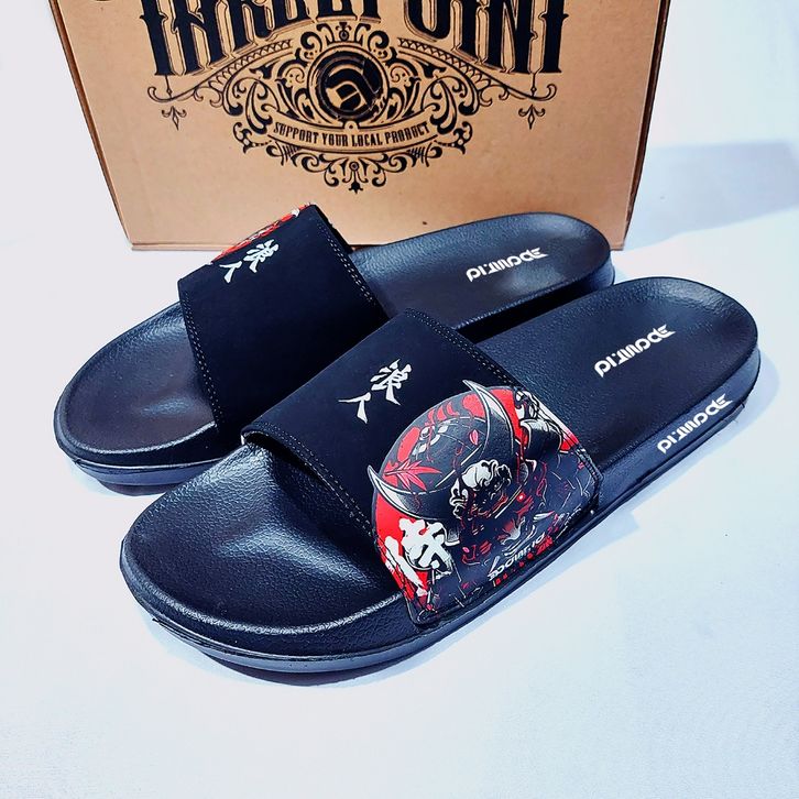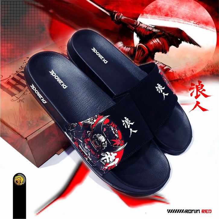 GRATIS ONGKIR SANDAL SLIDE PRIA SLIP ON KARET SENDAL SLOP PRIA SANDAL SLIDE DISTRO RONIN RED ORIGINAL 3POINT.ID