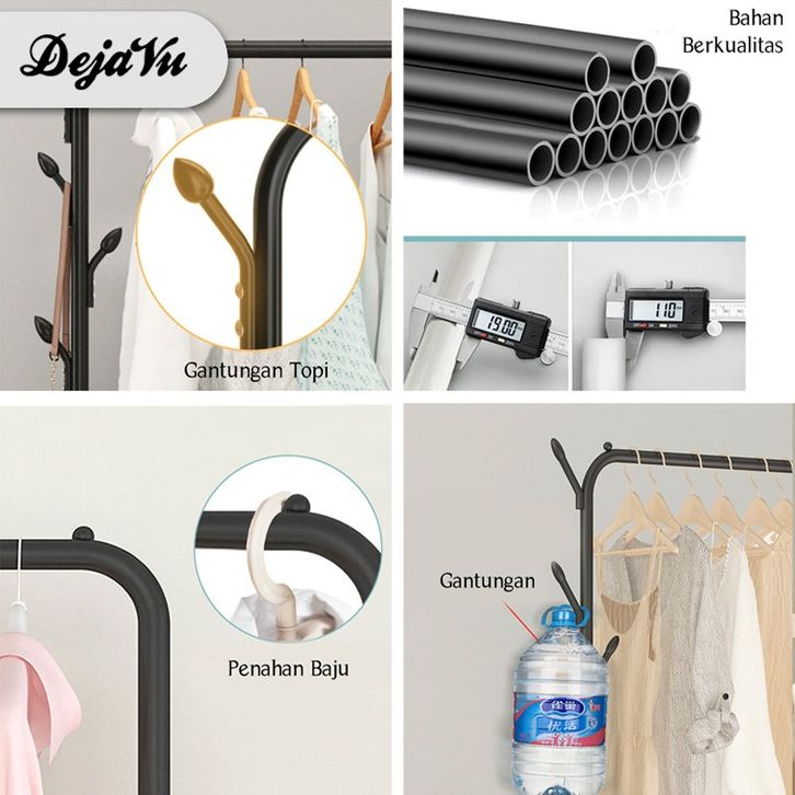 Dejavu Rak Gantungan Baju Berdiri Stand Hanger Serbaguna Rak Baju Pakaian Gantungan Topi Tas HSH101