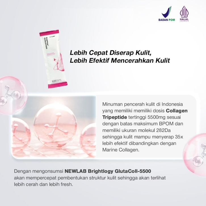 COLLAGEN DRINK NEWLAB BRIGHTLOGY GLUTACOLL-5500 MINUMAN GLUTATHIONE MENCERAHKAN KULIT WAJAH LEBIH GLOWING