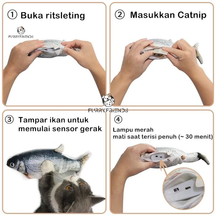 MAINAN KUCING BONEKA IKAN CATNIP CATMINT FISH CAT TOYS MAINAN HEWAN / ELEKTRIK MAINAN KUCING USB / MAINAN TIKUS BERGERAK