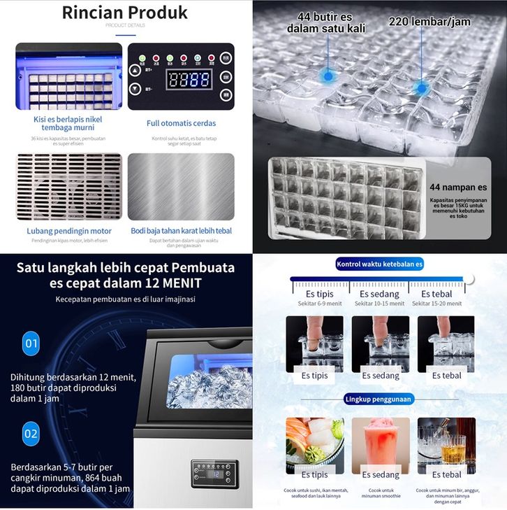[Star] Mesin Es Stainless Steel Mesin Es Batu Kristal 55Kg/Hari Mesin Pembuat Es Batu Kristal Ice Maker Mesin Es Kristal