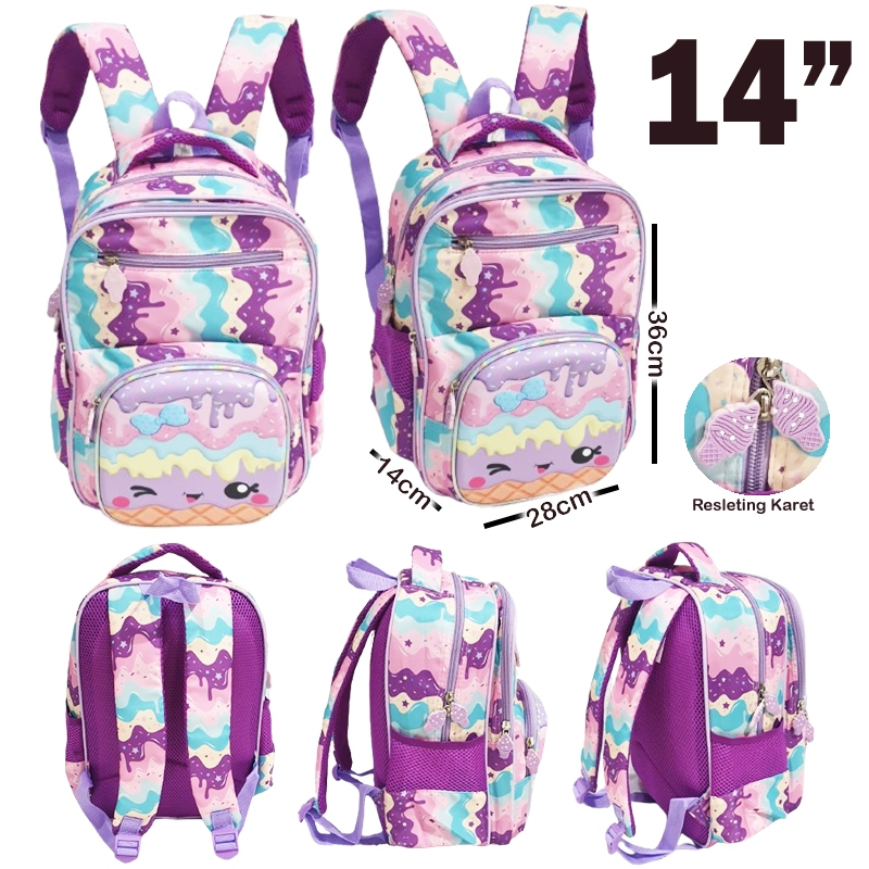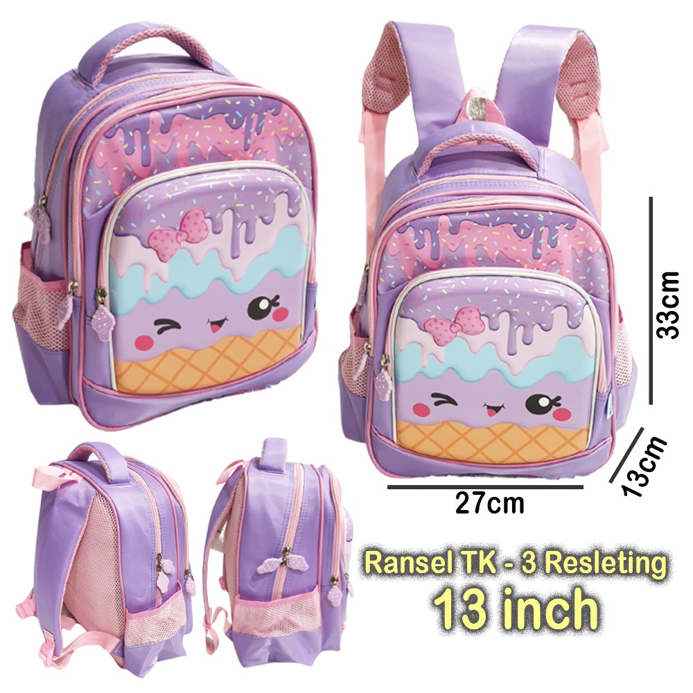 BACKPACK TK 13inch TAS RANSEL ANAK SEKOLAH PEREMPUAN TK ICE CREAM SUGAR KARTUN RABBIT KELINCI 3Resleting Karet IMPORT (