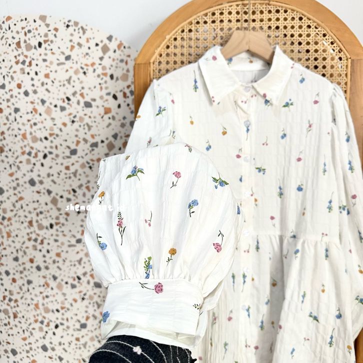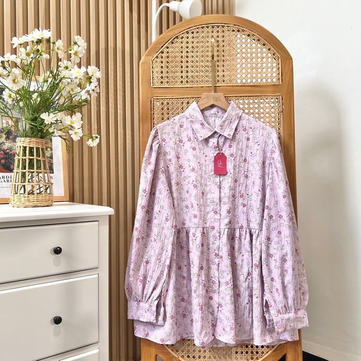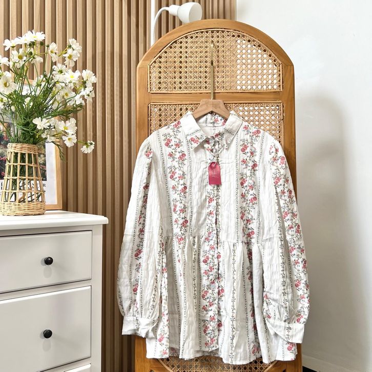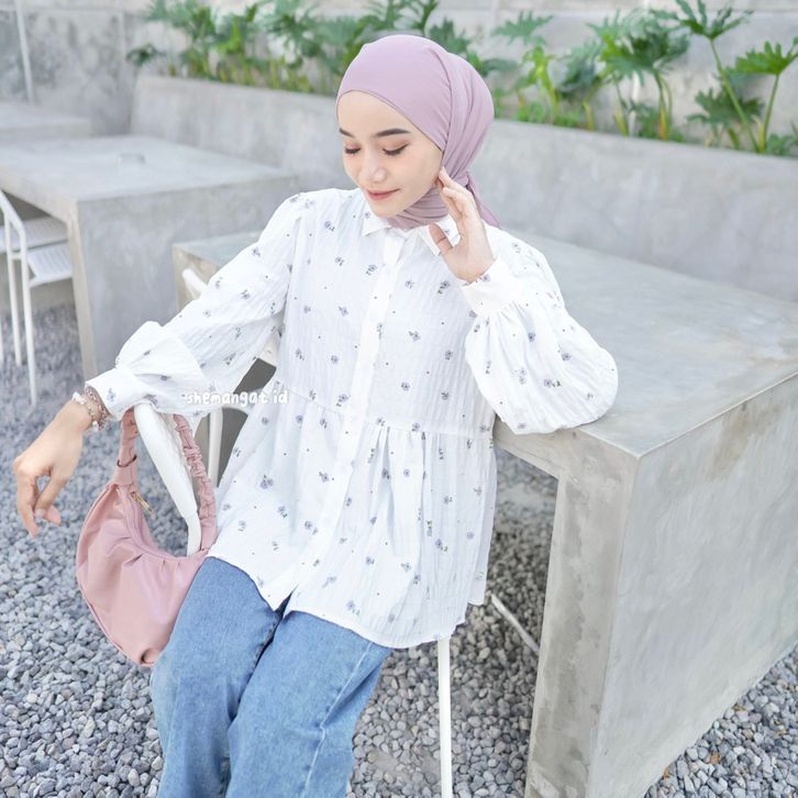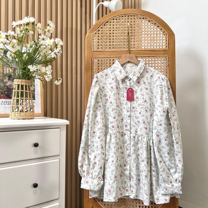 BLOUSE WHITE FIONA BLOUSE KOREAN LOOK MOTIF BUNGA / BLOUSE MOTIF BUNGA KEKINIAN / BLOUSE BUNGA / BLOUSE WANITA