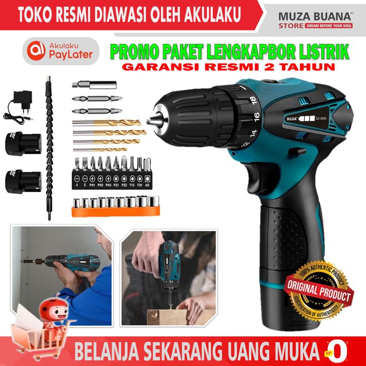 MUZA BUANA | Bor LISTRIK / BOR Baterai CordlessDrill 10MM 12V Mesin Mesin Bor 12VCordless Drill set