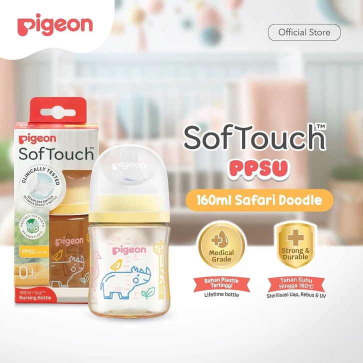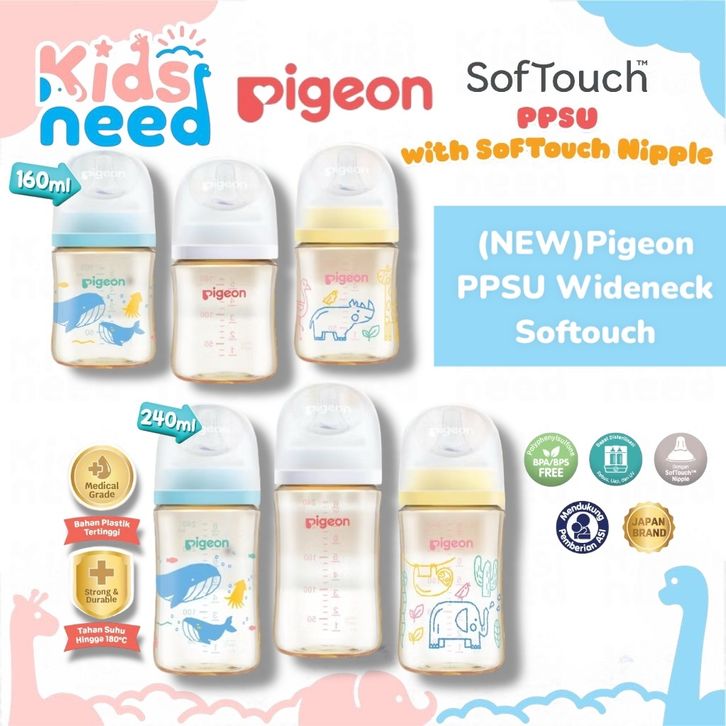 DESIGN BARU Pigeon Wide Neck PPSU 160ml 240ml Generasi Ke Tiga Gratis SIkat Botol Wide Neck PPSU Gen 3