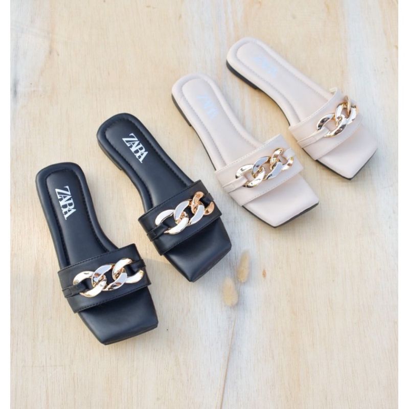 Sandal Flat Zara Sandal Zara Teplek Sandal Zara Wanita Terbaru Motif Rantai kualitas import