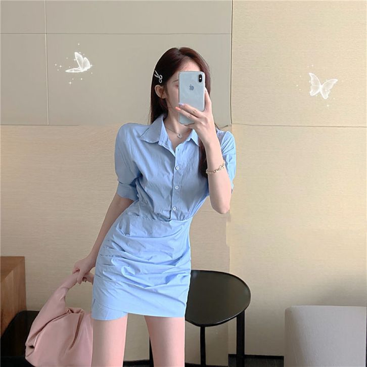 Dress Wanita Korea Jaket Wanita Korea Style Gaun Pesta Wanita Modern Mini Short Dress Kemeja Casual Dinner - G027