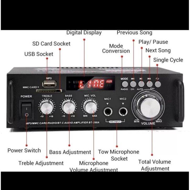 (PCB Warna Merah)Kerndy BT-298A Bluetooth EQ Audio Amplifier Karaoke Home Theater FM Radio 600w amplifier BT 298A