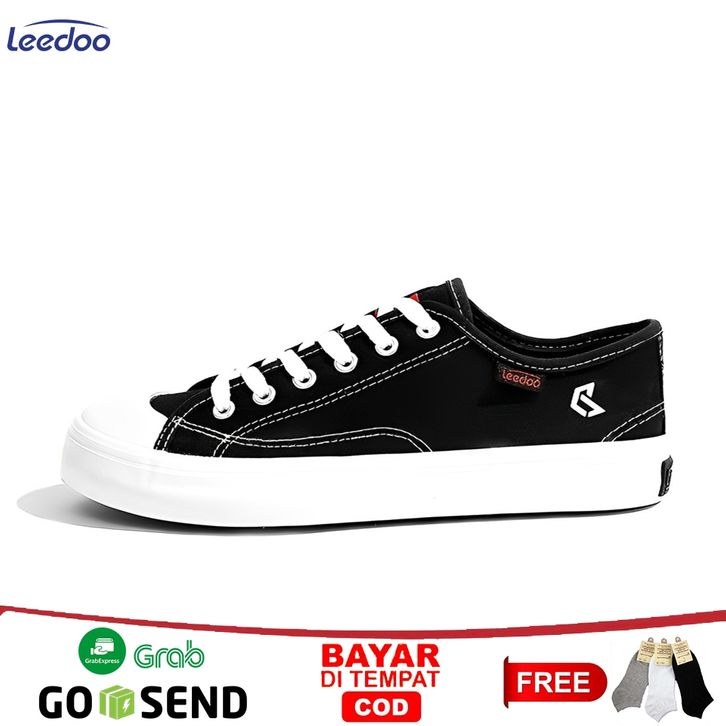 Sepatu Kain Pria Sepatu Sekolah Kets Sneakers Causal Kanvas Ori Cowok Kekinian Shoes Hitam MC308 Leedoo FREE ONGKIR