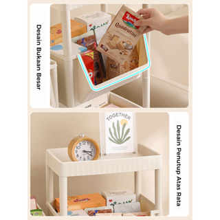 Rak Susun Penyimpanan Terbuka Serbaguna Rak Trolley Susun Dengan Roda Rak Buku Tebal Plastik Toy Storage Des