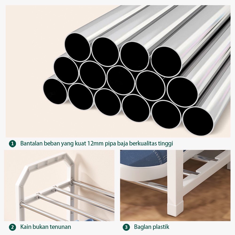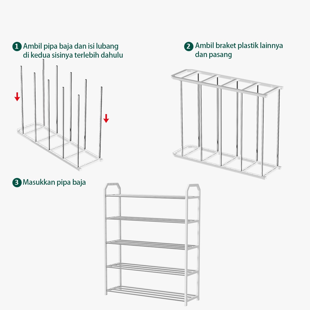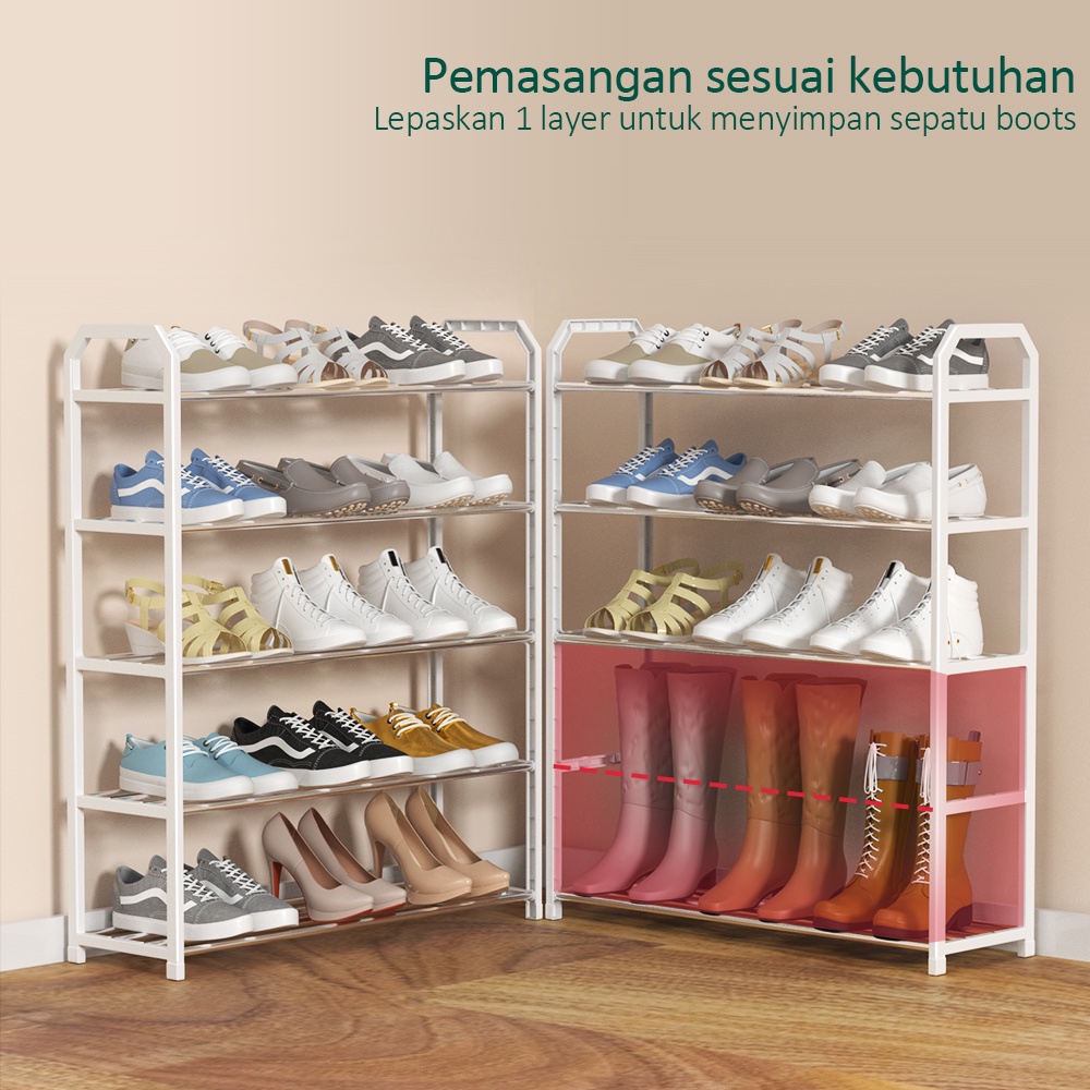 Rak Sepatu 5 Susun Serbaguna Portable Tempat Sepatu Sandal Rak Multifungsi Stainless Steel Bongkar Pasang