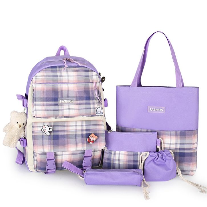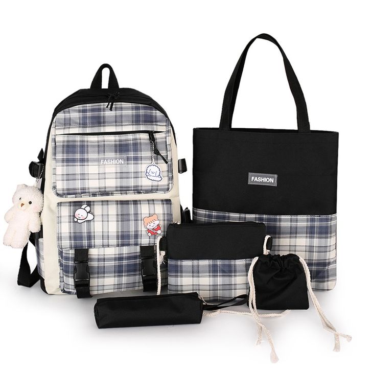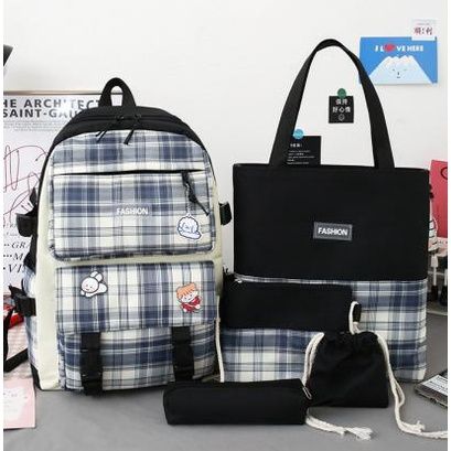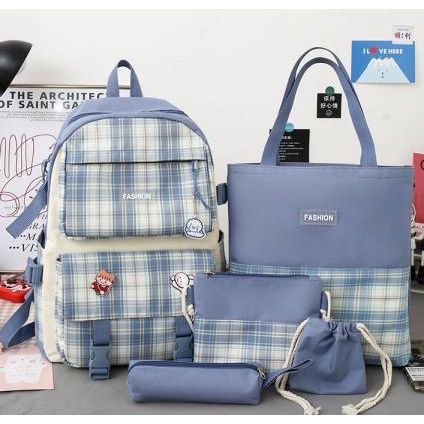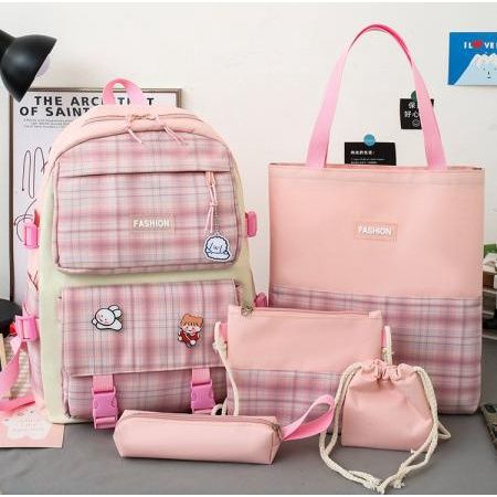 Tas Sekolah Anak SD SMP SMA Ransel Gendong Remaja Cewek Set 5in1 Backpack Buku Laptop Korean Style Kekinian