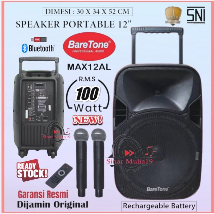 Speaker Aktif Portable BARETONE MAX12AL 12 INCH BLUETOOTH WIRELESS