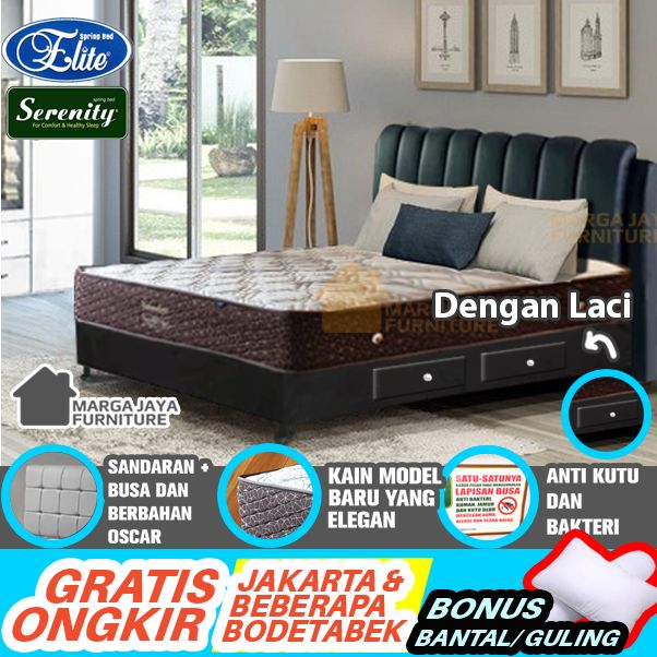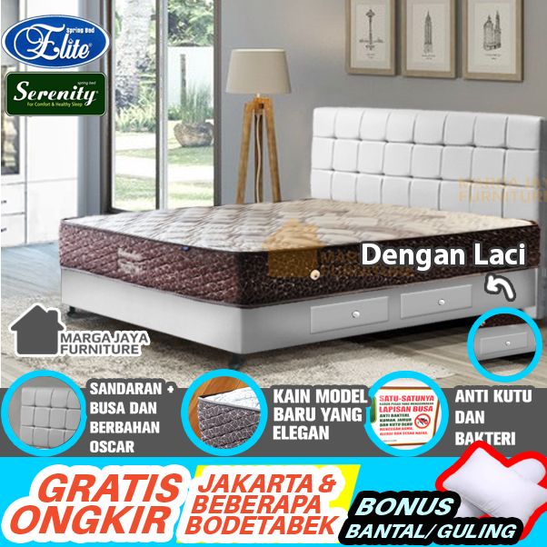 Kasur SET Springbed + Divan Sandaran ELITE SERENITY Superstar Valentine ranjang bedset Hitam Putih