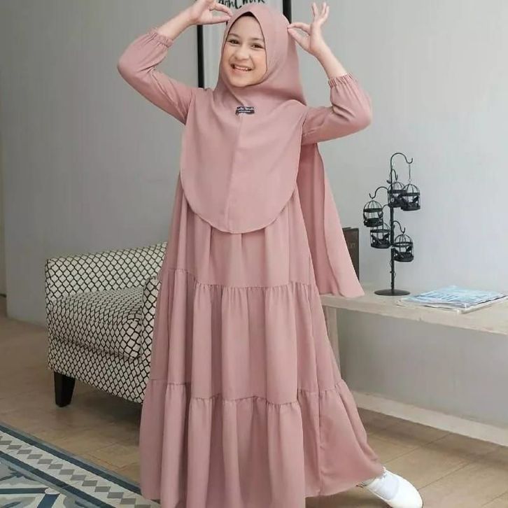 Gamis Anak Cewek Syar'i Pondok Pesantren Pakaian Muslim Remaja Bahan Rayon Halus Adem Umur 7-12 Tahun
