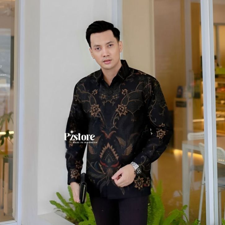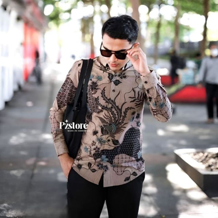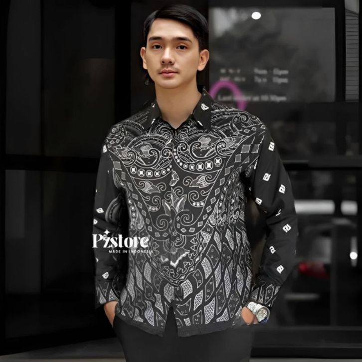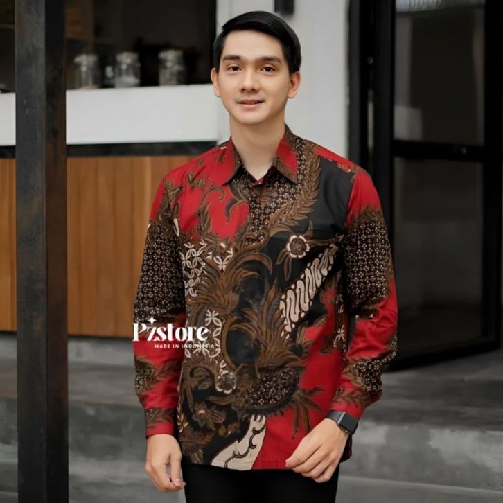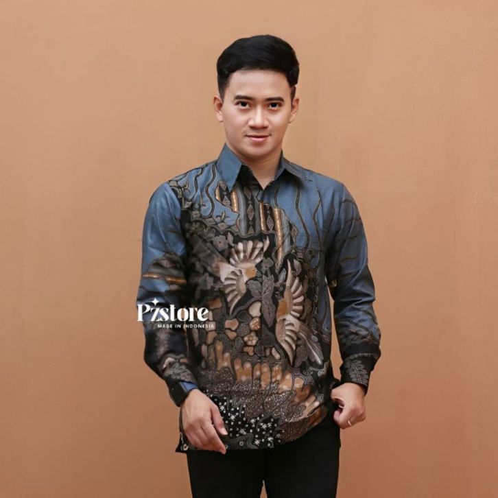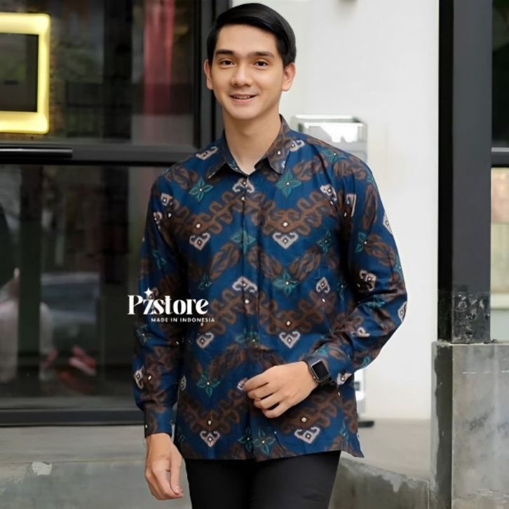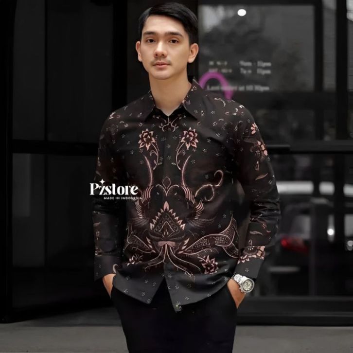 Ready Batik Pria Lengan Panjang BATIK AZMIL HRB026 motif KERATONAN Kode 002 size M L XL XXL