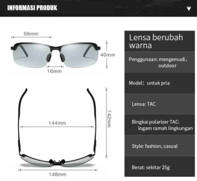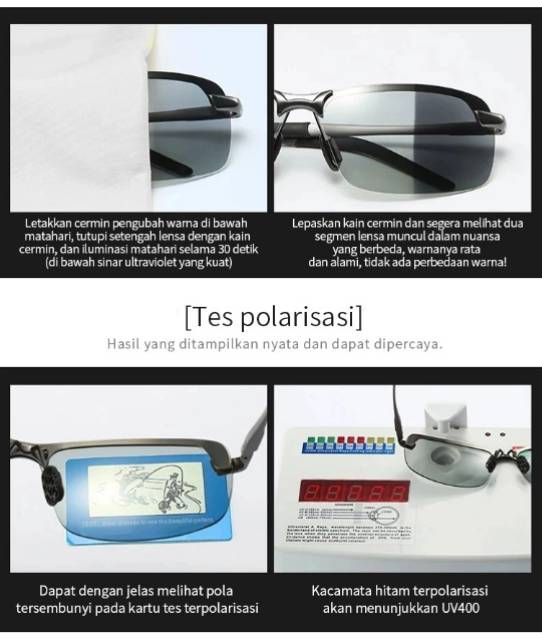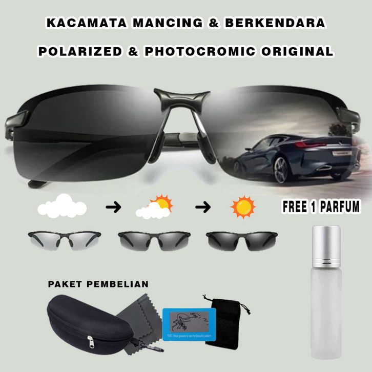 Kacamata Polarized Pria Original Photocromic Polaris Siang Malam Anti Silau Paser Ikan Berkendara