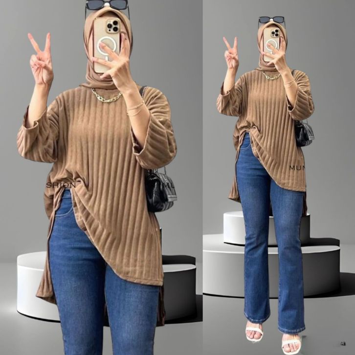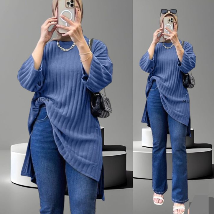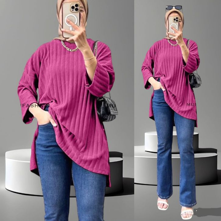 Atasan Tunik Cewek Oversize Baju Tunik Perempuan Lengan 7/8 Fashion Formal Kasual Santai Bahan Knit Hornet Tebal Halus