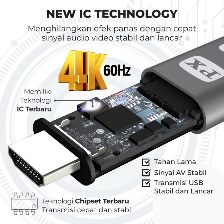 USB Type C 3.1 to HDMI Converter Kabel MHL HP ke TV 4K 1.8M PX MHA-4K60